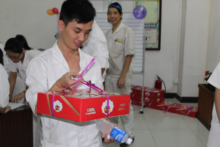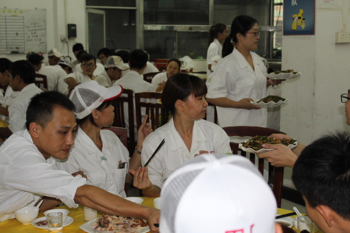 員工發(fā)放中秋禮物,并開始享用豐富晚餐